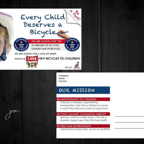 Bikes for Tykes is our non-profit partner and gives bicycles to children who would otherwise not own one